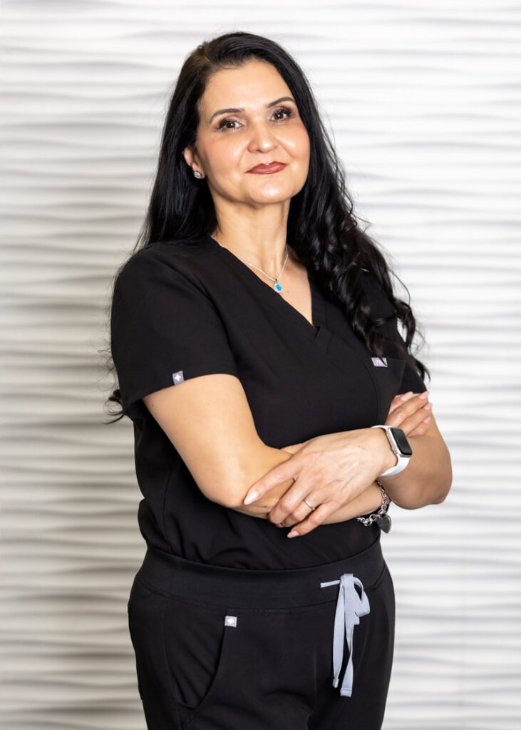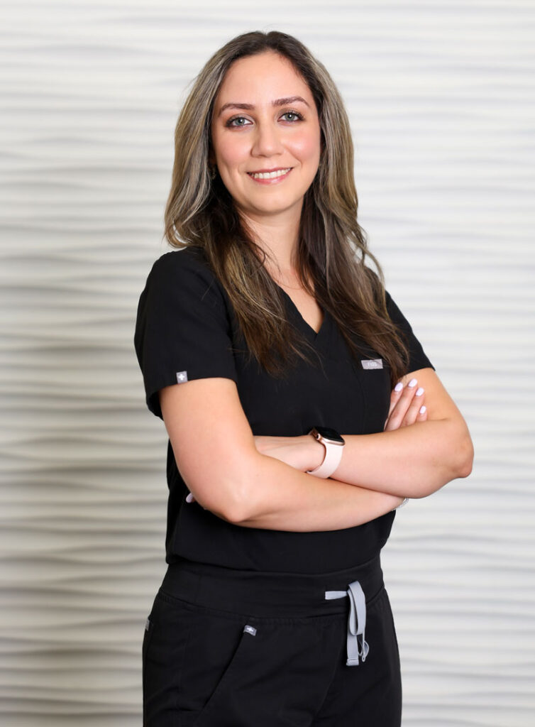 A proud Canadian periodontist, Dr. Katy Chahine was born in Syria and is the eldest of three siblings. She completed her DDS at the University of Western Ontario in 2005, laying the foundation for her dedication to excellence in dental care. Following her graduation, Dr. Chahine pursued advanced training in periodontology, earning both her MSc and Certificate in Periodontology from the University of Detroit Mercy in 2008. She subsequently achieved her Fellowship in the Royal College of Dentists of Canada as well as her Diploma from the American Board of Periodontology, cementing her expertise in the field.